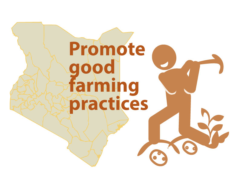 Through the Feed the Future Accelerated Institutional and Food System Development (AIFSD) program, CIP focused on supporting the establishment of potato seed systems at national and county levels, building capacity of extension services in good agricultural practices and basic agribusiness skills at the county level, supporting and building capacity of farmers’ organizations, establishing potato marketing systems, and supporting establishment of coordination bodies at the national level.